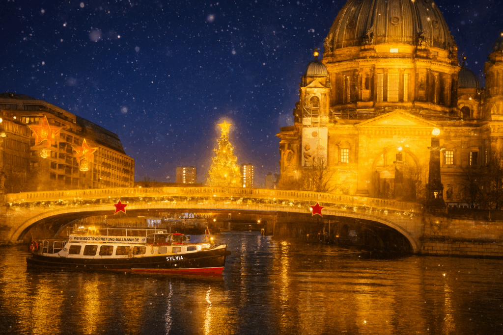 Mit einer Weihnachtsfeier auf dem Schiff in Berlin überraschen Sie Ihr Team mit einem außergewöhnlichen Rahmen: Sie feiern privat und exklusiv, ohne andere Gäste an Bord, und genießen dabei den winterlichen Blick auf die Hauptstadt vom Wasser aus. Entlang der Fahrt können Sie zahlreiche Sehenswürdigkeiten entdecken – einen Überblick über Highlights entlang der Spree finden Sie auch auf Visit Berlin.